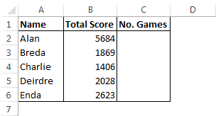 So far, our SUMIF tells us the total score achieved by each player, now we are going to work out how many times each person played the game.
