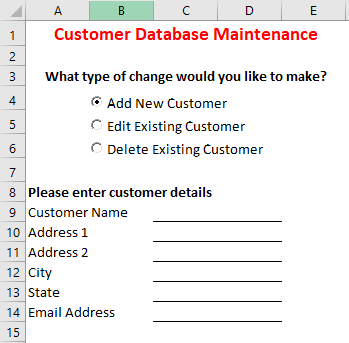 To demonstrate Option Buttons, we’ll use an example of a template for requesting changes to a customer database.