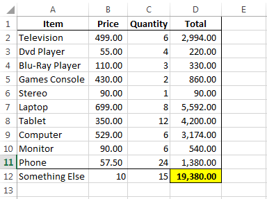 In the last post (number 2 above) we had a report of electrical items sold and we were manually formatting the file so it is in a required layout. The images below are of the original report and the final formatted report.