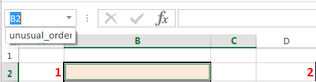 - In my case, the Name Box says “B2”. Overwrite this and give the range your own name, but make it mean something and no spaces are allowed. I will name my selection “unusual_order”.