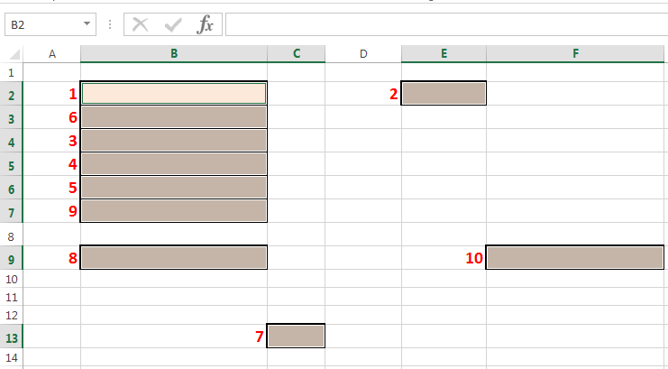 The image below is an extreme version of what I’m talking about. Starting from B2, you want to go to E2 next, then B4, then B5, then B6, then B3, then C13…. and so on.