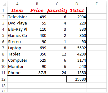 If you have been following the series of posts so far, you should have a file like the above. A macro has changed the text in the headers, changed the format of the header row, added a formula in column D and a total at the bottom of column D using variables.