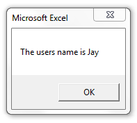 - MsgBox (“The users name is ” & userName, vbOKOnly)