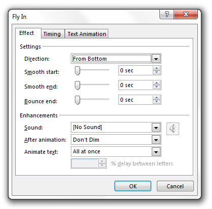 Depending on the animation selected you may see different effects options. For example some of the motion animations allow you to set the direction of the animation.